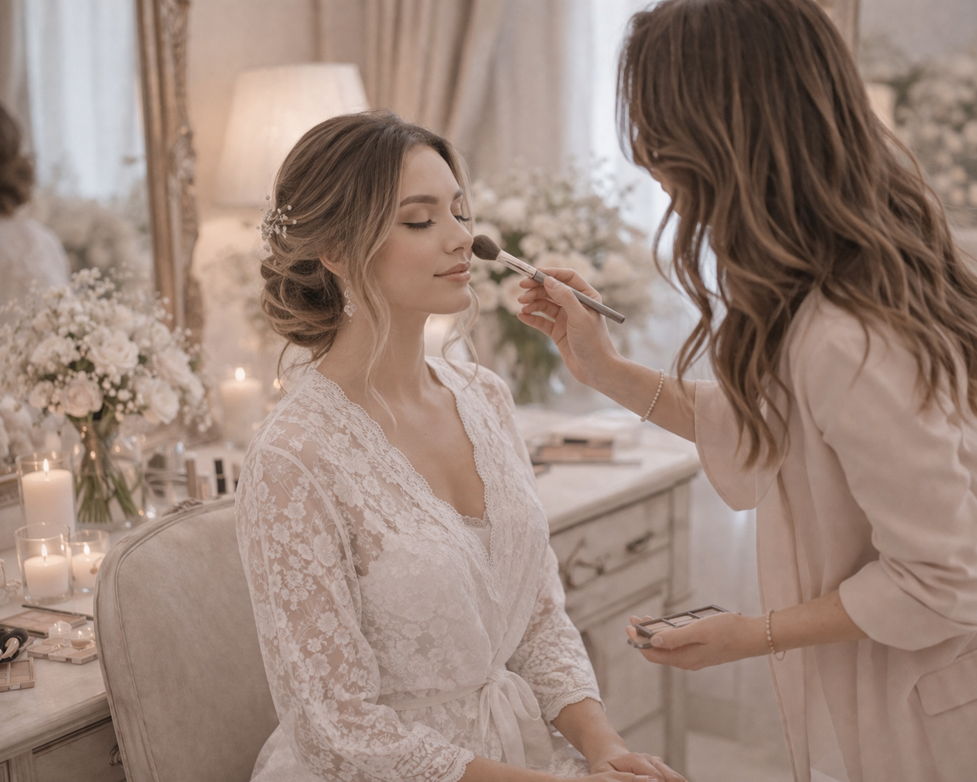 Nuestro servicio de maquillaje y peinado está diseñado para acompañarte en uno de los momentos más íntimos y significativos de tu boda: tu preparación.